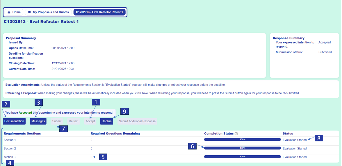 | 1 | If you have registered interest to the current opportunity, the Accept button will be automatically selected. If you have been invited to bid on an opportunity, you will need to accept the invitation before completing and submitting your responses. |